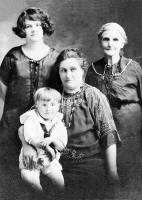 Della May Harris Newman is in the center, holding one of her grandsons, probably Ernest Skoglund. Pearl Ann (Newman) Skoglund, Della's daughter, is on the left. The back of the photo says the woman on the right is "Grandma Newman." However, Matilda (Jarrett) Newman died in 1910. This is likely "Grandma Harris," in which case this may be Sarah Ann (Abbey) Harris. This photo was taken in 1924, two years before Della passed on, at her daughter Olive's house in Canada. On the back of photo, its says Grandpa Newman 1949