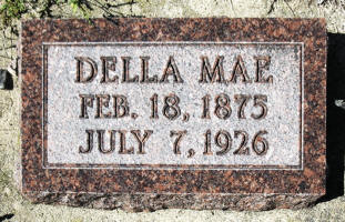 Della Mae Harris was born February 18, 1876, in Minnesota City, Winona Co., MN, and died July 7, 1926, at the home of her daughter, Olive, in Shaunavon, Saskatchewan, Canada, at age 50. Buried in Velva Cemetery, Velva, McHenry Co., ND. She is the daughter of John Benjamin Harris of Wisconsin and Sarah Ann Abbey of Clarke Twp., Newcastle Dist., Durham Co., Canada West.