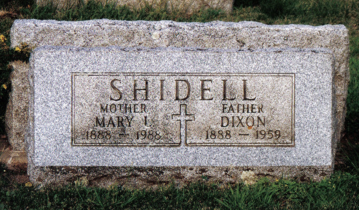 Dixon "Dick" Shidell and Mary Leona "Onie" (Krubsack) Shidell are buried in Forest Hill Cemetery, Wisconsin Rapids, Wood Co., WI. Thanks to Find-A-Grave for making this image available.