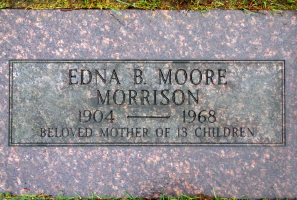 Hurshel Morrison and Edna Beatrice (Martineau) (Moore) Morrison are buried in Mills and Mills Memorial Park, Tumwater, Thurston Co., WA. Thanks to Find-A-Grave for making these images available.