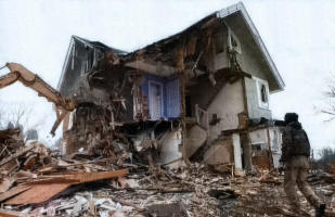 structure standing where Mr Gerndt has his meat market, next to