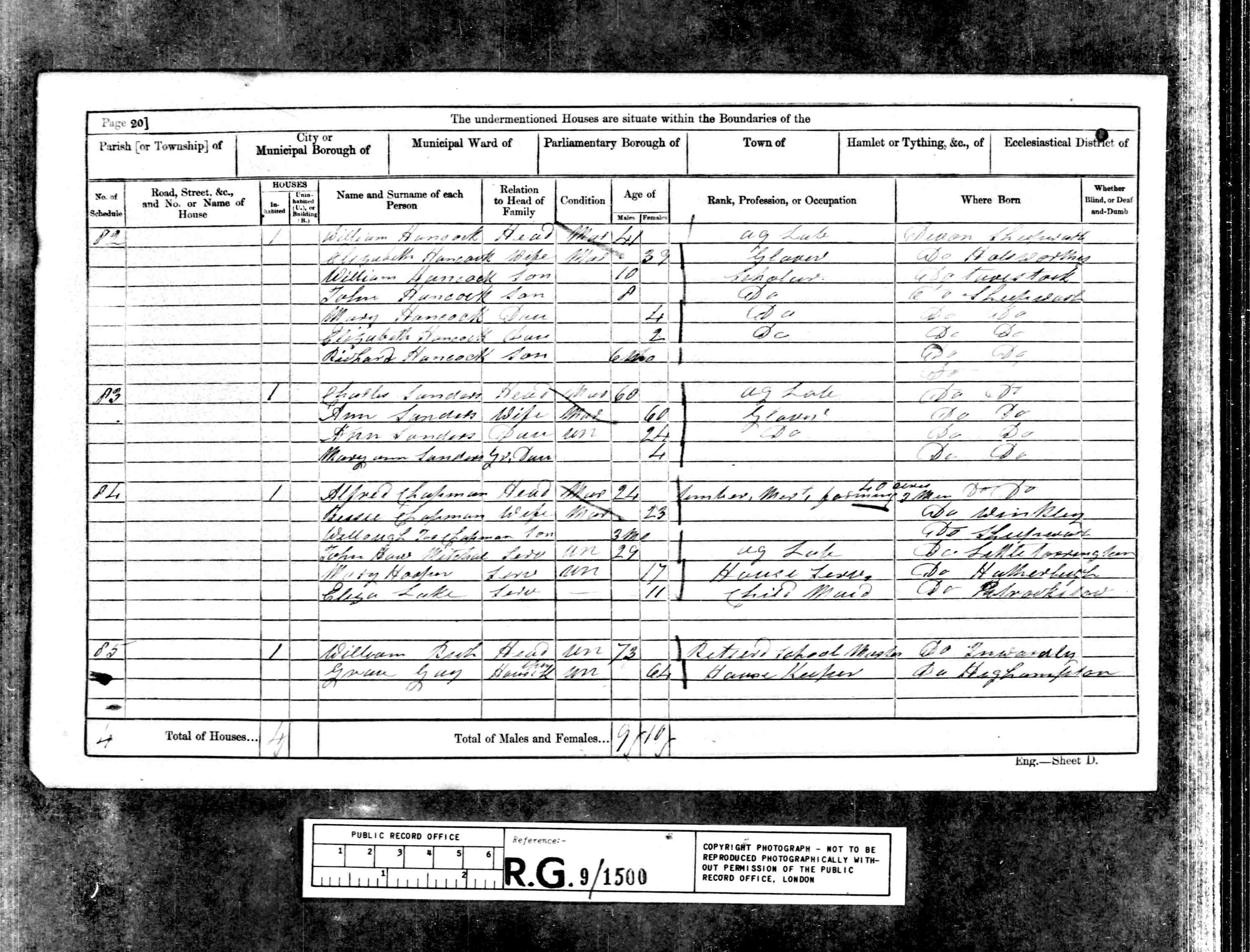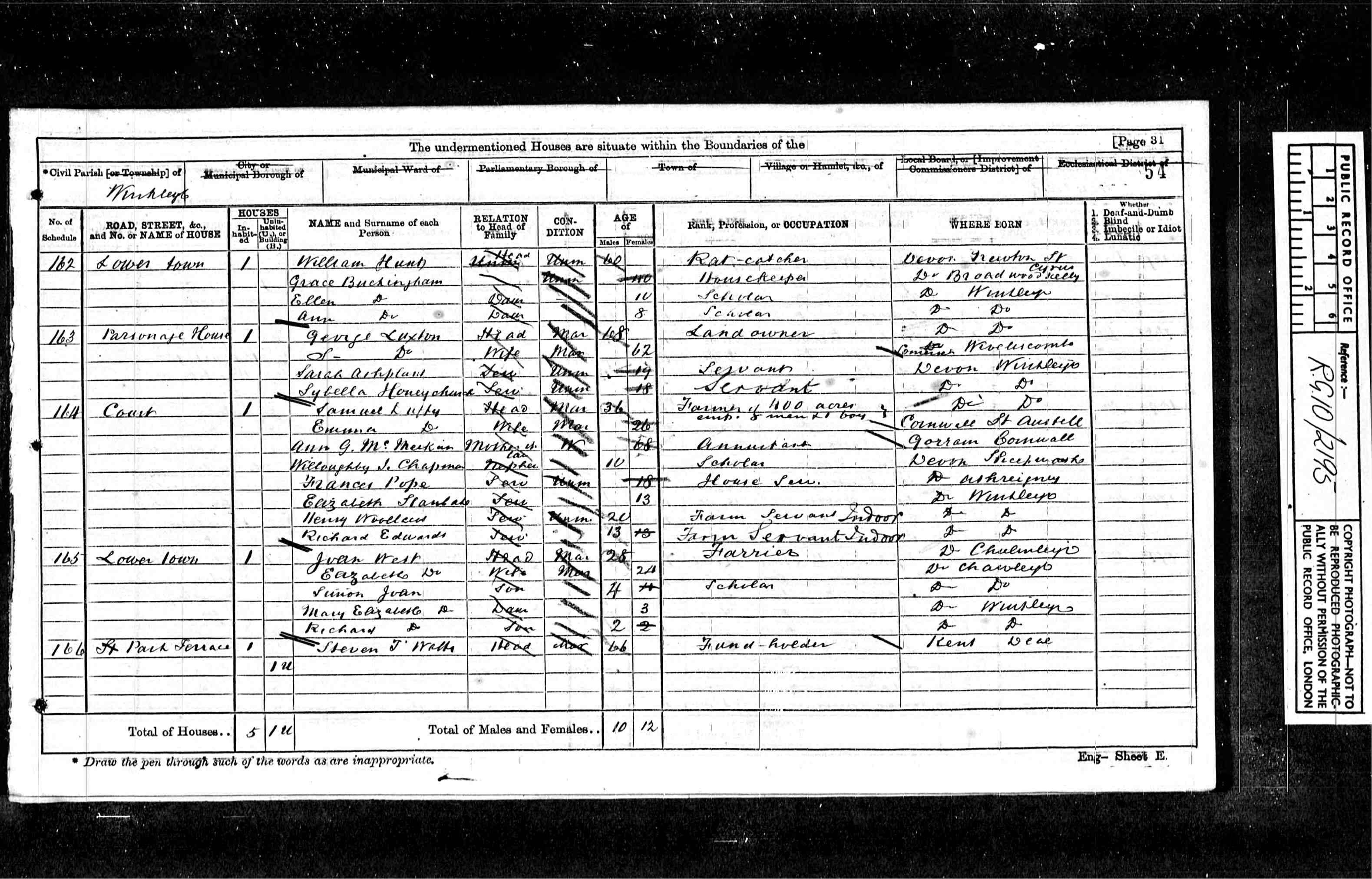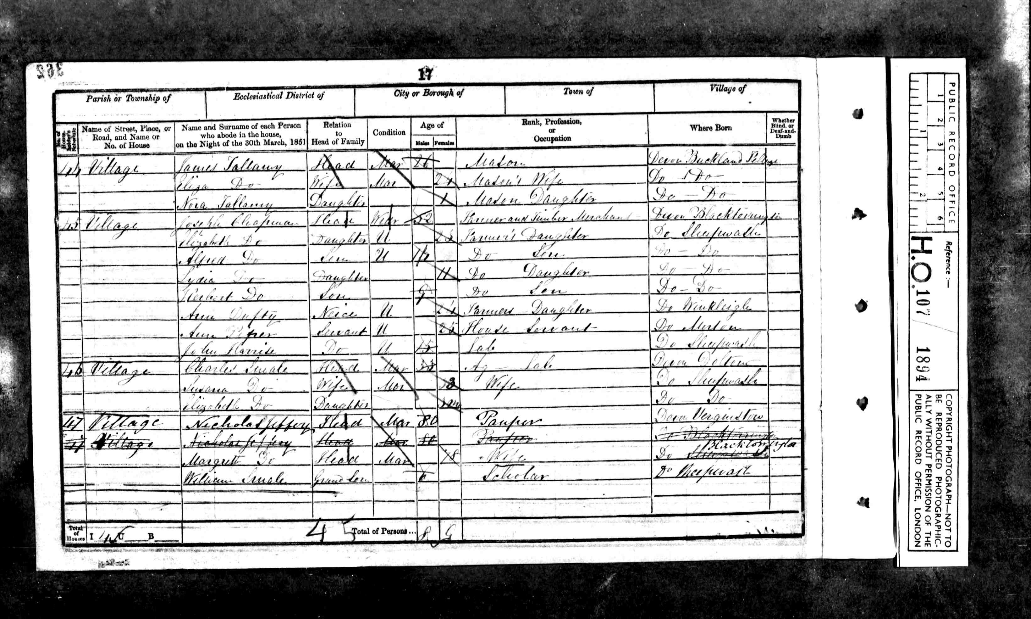 Willoughby Joseph Chapman (age 29), a bachelor, and Francis