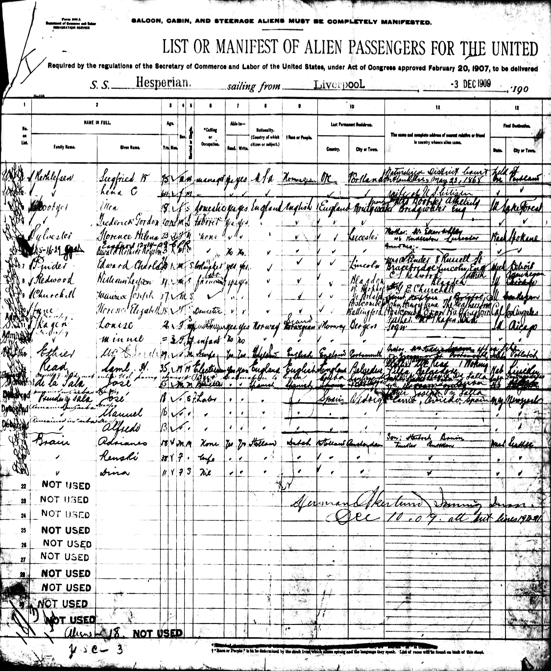 Ellen Boobyer (age 18) and Frederick Gordon Boobyer (age 20) immigrated to the United States in December, 1909.