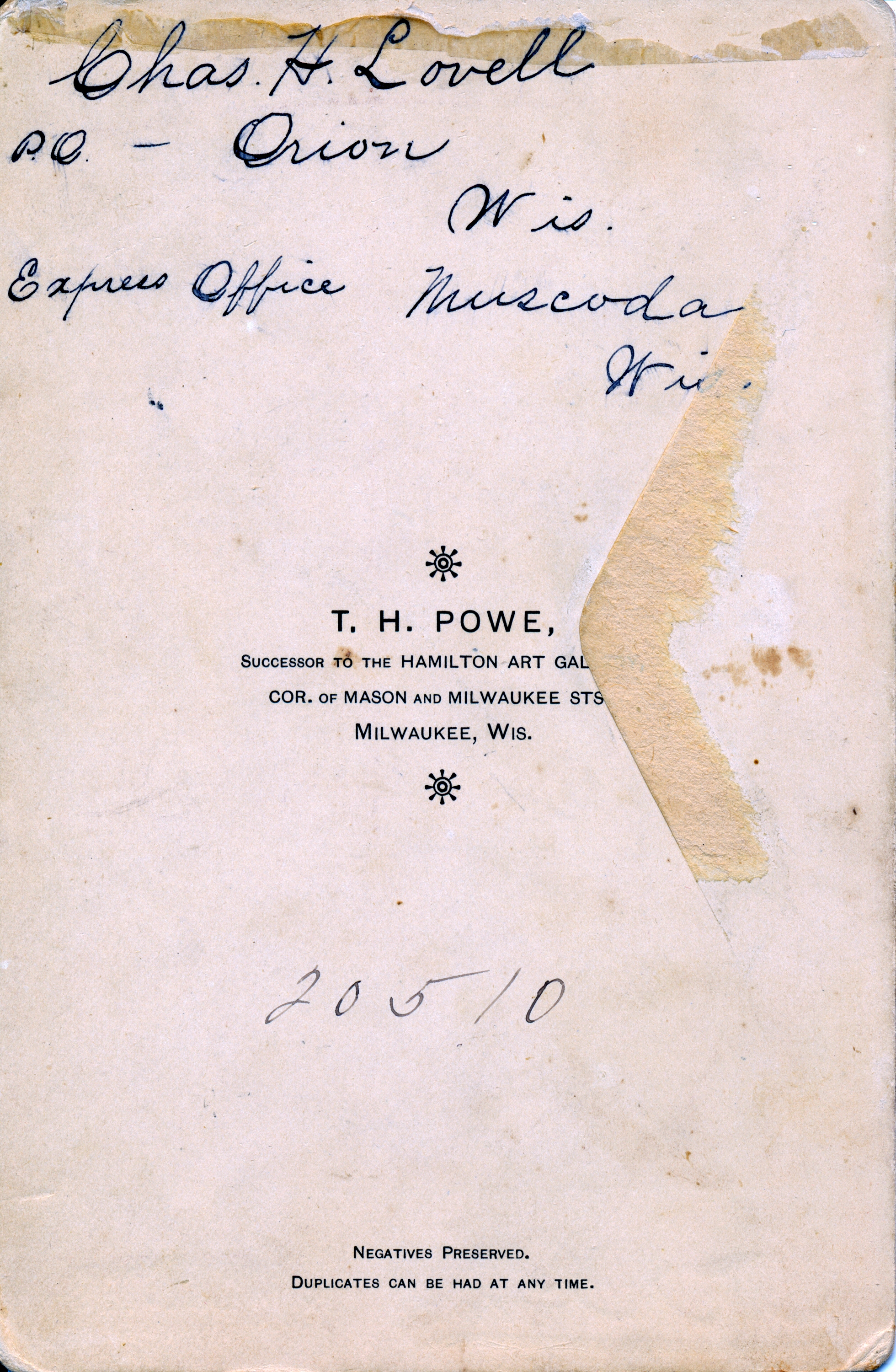 The 1895 Wisconsin State Census taken on June 20, 1895, shows Chas. Lovell is the Head of Household and is living in the Town of Orion, Richland Co., WI . There are a total of 4 Males and 1 Female living there.