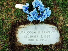- Malcolm Harold Lovell: Born December 13, 1898, in the Town of Orion, Richland Co., WI ; Died June 17, 1950, at a Chicago hospital, Proviso, Cook Co., IL (age 51). Buried in Roselawn Memorial Park, Monona, Dane Co., WI. Married February 19, 1945, in Madison, Dane Co., WI, to Pearl B. Murphy: Born October 15, 1911, in Wisconsin; Died July 6, 1973, in Cook Co., IL (age 61). Buried in Roselawn Memorial Park, Monona, Dane Co., WI.