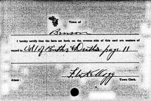 The 1870 U. S. Census taken on August 31, 1870, shows E. Butterfield (age 46) born in Vermont, and with personal estate of $200 is a Farm Laborer, and is living in Roscoe Twp., Winnebago Co., IL. Living with him are: Alma Butterfield (age 49) born in New York, who is Keeping House; Nathan Butterfield (age 17) born in Illinois; Ansel Butterfield age (15) born in Illinois; Orrin Butterfield (age 12) born in Illinois; Arthur Butterfield (age 9) born in Illinois; and Alma Butterfield (age 5) born in Illinois.