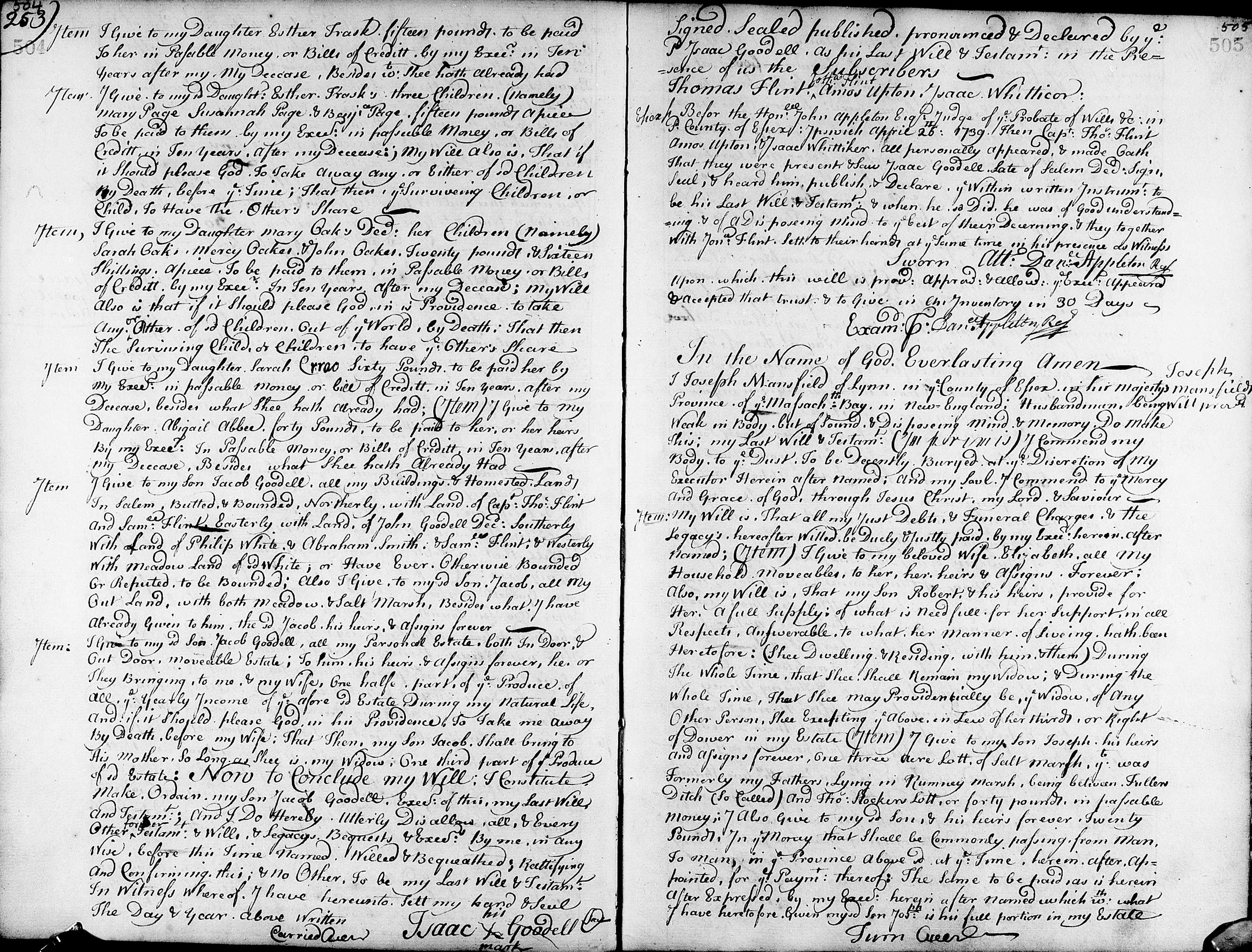 Isaac's will can be found: Essex, Massachusetts, Essex County, Massachusetts, probate records and indexes 1638-1916, FHL 875131; vols. 320-322, Book 20-22, 1732-1781; P. 503-504; Image 750-751 of 784; Massachusetts. Probate Court (Essex County), Massachusetts. Court of Insolvency (Essex County).