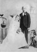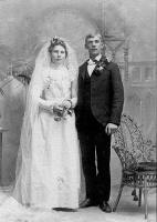 Clarence Cornelius Nelson and Edith Christina Larson studio wedding picture, Waupaca, Waupaca Co., WI, April 15, 1900.