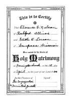 Clarence Cornelius Nelson and Edith Christina Larson Wedding Certificate, Waupaca Co., WI, April 15, 1900.