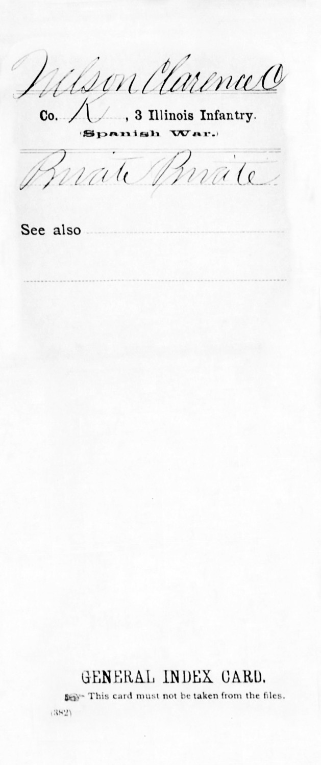 State: Illinois, Given Name: Clarence C., Surname: Nelson, Company: K, Regiment: 3 Illinois Infantry, Enlistment Rank: Pvt, Discharge Rank: Pvt.