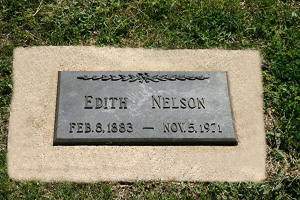 Edith Christina (Larson) Nelson died November 5, 1971, at the State Veteran's Home Infirmary, Hot Springs, Fall River Co., SD, at age 88. Buried in State Veterans Home Cemetery, Hot Springs, Fall River Co., SD.