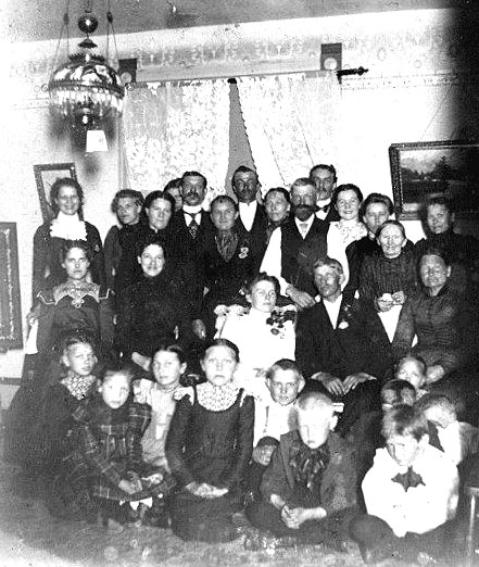Clarence Cornelius Nelson and Edith Christina (Larson) Nelson wedding reception, the Emil Nelson home, Rockford, Winnebago Co., IL, April 17, 1900.