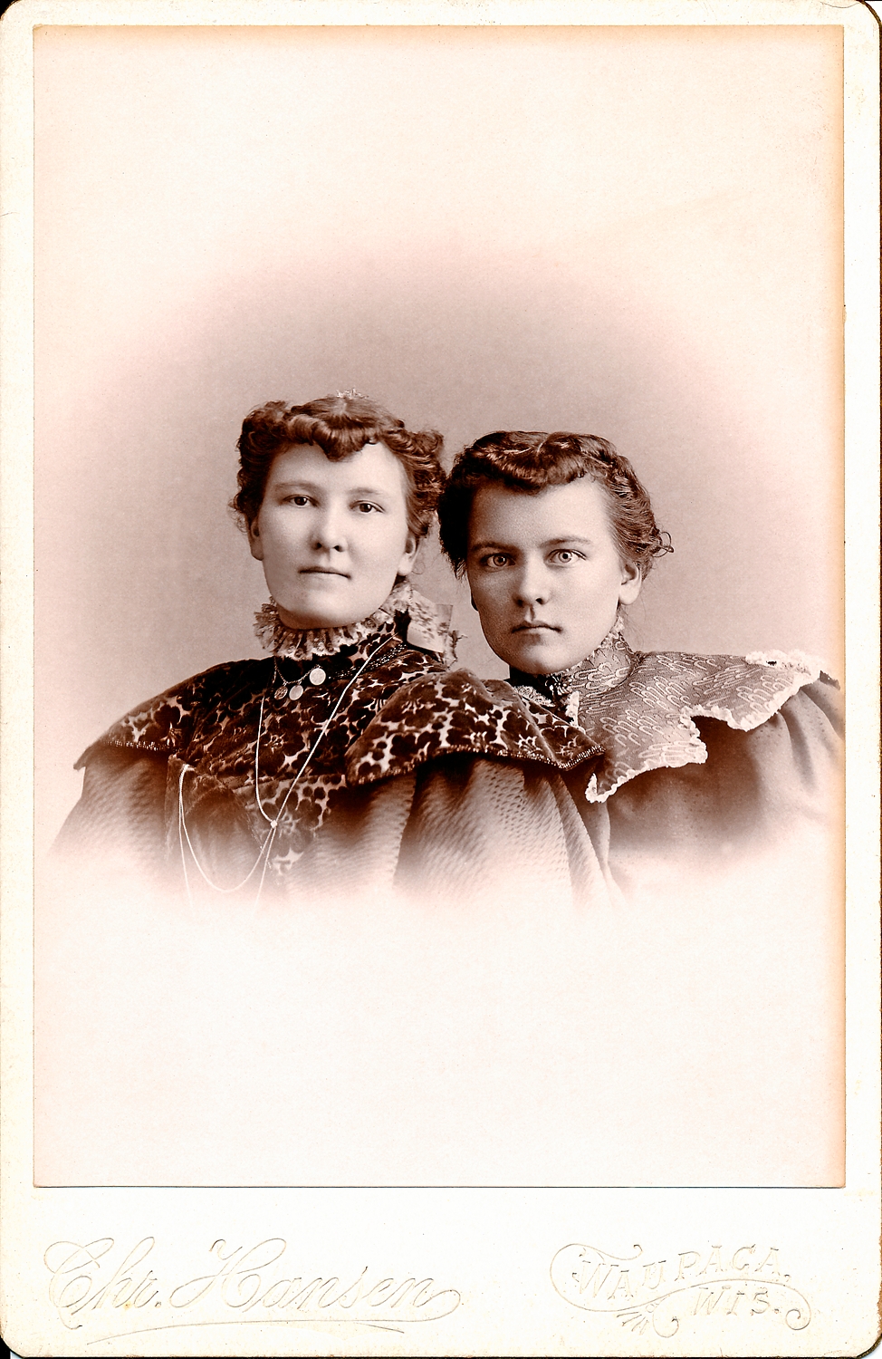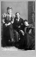 Edythe "Eda" (Lewis) Lear , George R. Hanson, and Mamie Hanson, Waupaca, Waupaca Co., WI, about 1906. George R. Hanson was a Bartender who remained unmarried and lived with his widowed mother for many years, finally marrying in his 50s. Mamie Hanson remains a mystery.