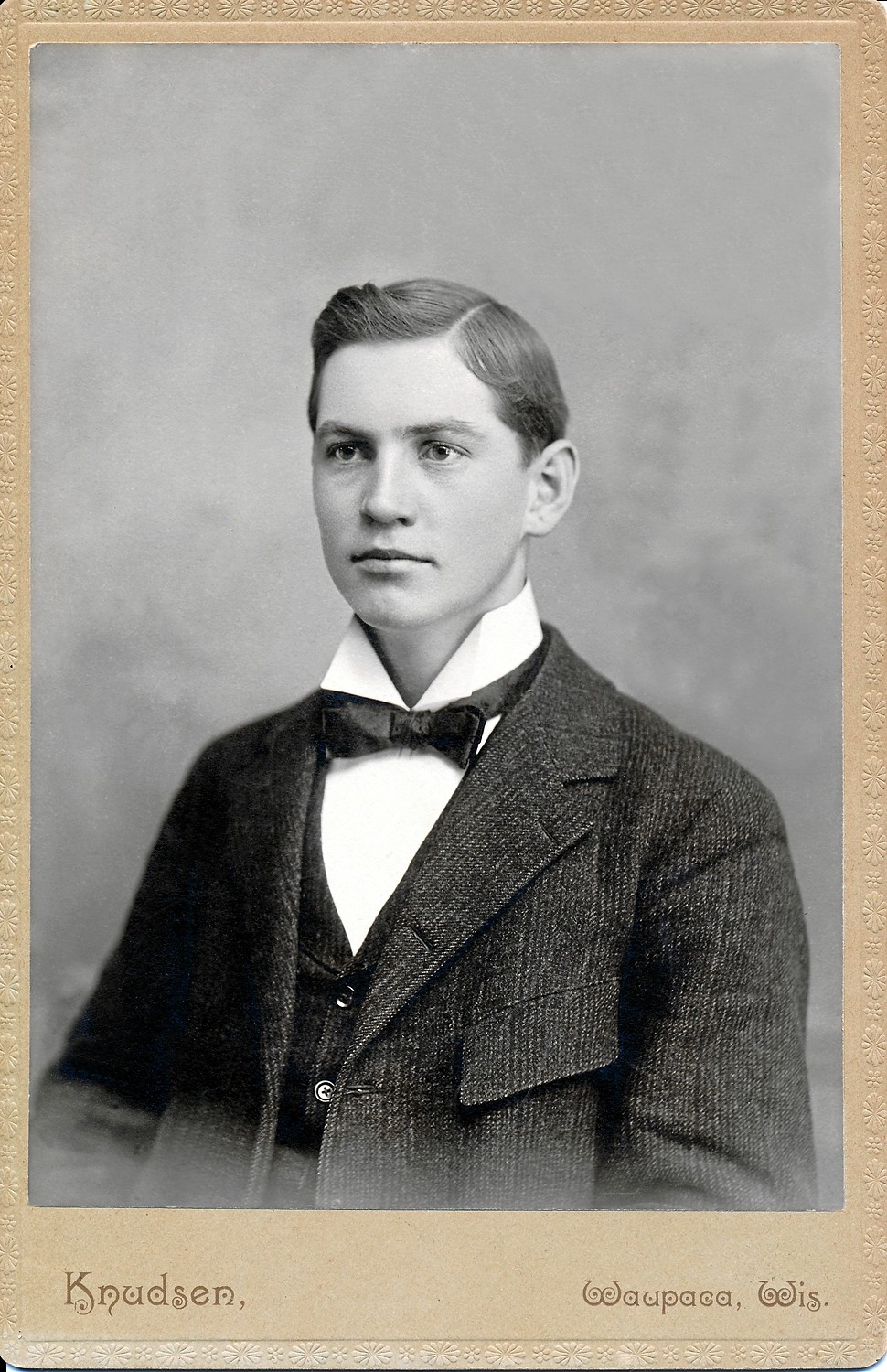 The 1900 U. S. Census taken on June 4, 1900, shows Frank Lear (age 26) born September 1873 in Wisconsin to New Hampshire and Massachusetts- born parents is an unmarried Dry Goods Clerk boarding on Fulton Street, 1st Ward, City of Waupaca, Waupaca Co., WI.