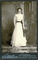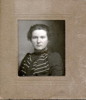 Bertha Thiel, likely a friend of Edythe "Eda" Lewis , Waupaca, Waupaca Co., WI, ca. 1903. She was born February, 1883, in Wisconsin, and died 1915 in Wisconsin at about age 33. Buried in Emanuel Lutheran Cemetery, New London, Waupaca Co., WI. She married Herman Charles Roos (born September 16, 1880, in Germany; died August 22, 1942, in New London, Waupaca Co., WI), and had a daughter, Mildred Henriette (Roos) Rubbert (1911 - 2007). Bertha is the daughter of Christian Friedrich "Christ" Thiel Jr. of Mulkintine, Preussen, Germany (born November 27, 1844), and Ernestina Friedrike Wilhelmine Backhaus/Bacchaus of Darz, Preussen, Germany. Lived in Royaton, Waupaca Co., WI, in 1900. Lived in Lebanon Twp., Waupaca Co., WI, in 1905.