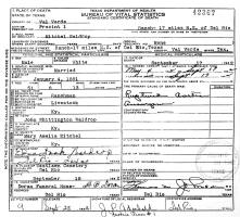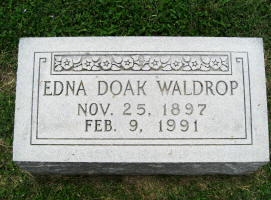 Edna Mae (Doak) Waldrop died February 15, 1991, in the Medical & Surgical Hospital, Del Rio, Val Verde Co., TX at age 93. Buried in Westlawn Cemetery, Del Rio, Val Verde Co., TX.