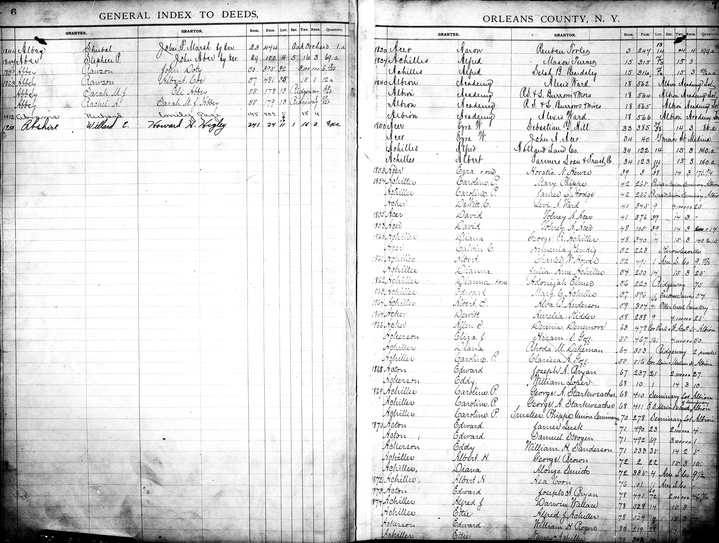 The General Index to Deeds for Orleans Co., NY, shows that in 1863 Sarah M. J. Abbey granted land to Rachel A. Abbey, and the same lot was also granted by Eli Abbey tp Sarah M. J. Abbey.