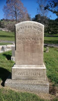 Mountain View Cemetery, Oakland, Alameda County, CA. The following names are on the same cemetery marker: Warren M. Watson: 1845 - 1913; Emma Pearl Watson: 1851 - 1880; John W. Watson: 12/3/1825 - 3/16/1896; Emily M. Watson: 1845 - 1874. Thanks to Find-A-Grave for making this image available.