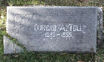 - Clifford Ambrose Toll: Born January 2, 1888, in Howard, Kent Co., Ontario, Canada ; Died 1955 in Unknown (age 67). Buried in Mount Pleasant Municipal Cemetery, Edmonton, Alberta, Canada. Married (1) to Carrie Margaret Unknown: Born 1891 in Alberta, Canada; Died Unknown. Married (2) about 1926 in Unknown to E. Alice Unknown: Born about 1905 in Canada; Died 1995 in Unknown. Buried in Mount Pleasant Municipal Cemetery, Edmonton, Alberta, Canada. She then married Albert R. McCallum: Born 1913; Died 1995. Buried in Mount Pleasant Municipal Cemetery, Edmonton, Alberta, Canada.