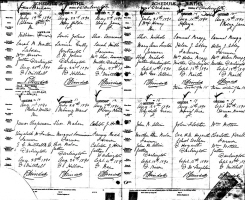 The 1851 Canadian Census taken on 1851 shows George Dobson (age 51) born in England is a Yeoman and is living in Clarke Twp., Durham Co., Canada West. Living with him are: Mrs. E. Dobson (age 46) born in England; Rachel Dobson (age 22) born in England; Betsy Dobson (age 19) born in Canada; George Dobson (age 17) born in Canada; Robert Dobson (age 13) born in Canada; Mary Ann Dobson (age 11) born in Canada; William Dobson (age 8) born in Canada; John James Dobson (age 6) born in Canada; and Eliza Jane Dobson (age 3) born in Canada.