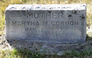 Martha Ann (Bragg) Gordon d ied March, 1905, in Manitoba, Canada, at age 28. Buried in Arden Cemetery, north of Arden, Lansdowne RM, Manitoba, Canada.