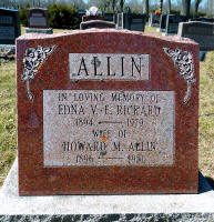 Howard M. Allin and Edna Viola Elizabeth (Rickard) (Bragg) Allin are Bowmanville Cemetery, Bowmanville, Durham Regional Municipality, Ontario, Canada. Thanks to Find-A-Grave for making this image available.