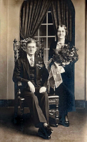 Cora Ethel Olivia Johnson and Wilbur Almo Larson at the Larson farm, Town of Farmington, Waupaca Co., WI, about 1914.