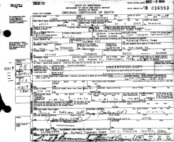 - Cora Ethel Olivia Johnson: Born October 7, 1900, in the Town of Farmington, Waupaca Co., WI ; Died November 22, 1970, at Riverside Community Memorial Hospital, Waupaca, Waupaca Co., WI (age 70). Buried in West Akers Lutheran Church Cemetery, Ridgeland, Dunn Co., WI. Married about June, 1935, in Menomonie, Dunn Co., WI, to John "Johnnie" Johnson: Born November 28, 1903, in the Town of Stinnet, Washburn Co., WI ; D ied April 25, 1969, in Sacramento Co., CA, at age 65. Buried in Sacramento County Veterans Memorial Cemetery, Sacramento, Sacramento Co., CA. Note: John Earl "Johnnie" Johnson separated from his wife, Cora, 1937 - 1938, in Dunn Co., WI, and went to live nearby with his brothers and mother. They were never divorced.