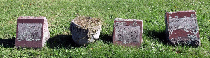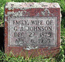 Gustaf Alfred "Fred" Johnson, Emilia Sophia "Emily" (Larson) Johnson, as well as their children, are buried in Salem (Old Swede) Cemetery, Town of Farmington, Waupaca Co., WI. Thanks to Find-A-Grave for making these images available.