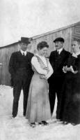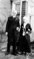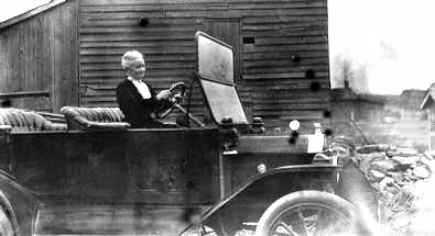 Emily (Gilby) Hardy and Victor Wilson, 1908. The car belonged to Dr. George Buckton Hardy, DDS., who was quite a remarkable man - first a teacher, then a dentist whose office was on Carlton St. opposite Maple Leaf Gardens in Toronto, then he retired and opened a Nursery and grew plants and flowers. His fianc�e died during the plague epidemic and his love life died with her. He had quite a zest for life, and traveled to England in 1900 by ship.