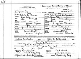 - John Arthur Hollingshead: Born December 2, 1907, in Bridgeport, Nevada Co., CA; Died February 23, 1998, in City of Yuba, Sutter Co., CA (age 90). Buried in New Elm Ridge Cemetery, Grass Valley, Nevada Co., CA. Married (1) about September 9, 1930, in Reno, NV, to Doris June Rounds: Born June 17, 1914, in Humboldt Co., CA; Died August 1, 1990, in Coos Co., OR (age 76). Divorced before 1937 in Unknown. Married (2) May 15, 1937, in Grass Valley, Nevada Co., CA, to Juanice Beatrice (Bennetts) Rowe: Born June 30, 1904, in Grass Valley, Nevada Co., CA; Died June 19, 1980, in Yuba City, Sutter Co., CA (age 75). Buried in New Elm Ridge Cemetery, Grass Valley, Nevada Co., CA. Doris' mother, Carol P. (Unknown) Rounds, married Otto Roloff about January 31, 1931, in Sacramento, CA. Doris June (Rounds) Hollingshead then married (2) to Unknown Stroh: Born Unknown; Died Unknown. Jaunice Beatrice Bennetts was married (1) November 8, 1927, at the Congregational Church, Grass Valley, Nevada Co., CA, to Leland George Rowe: Born November 30, 1899, in Grass Valley, Nevada Co., CA; Died July 17, 1929, due to Bright' s disease, a kidney ailment, at an Oakland hospital, Oakland, Alameda Co., CA (age 29). Buried in Odd Fellows and Masonic Cemetery, Grass Valley, Nevada Co., CA.
