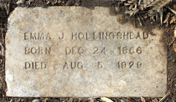 Emma Jane (Shidell) Hollingshead died August 5, 1929, in the City of Woodland, Woodland Twp., Yolo Co., CA, at age 63. Buried in Woodland Cemetery, Woodland, Yolo Co., CA.