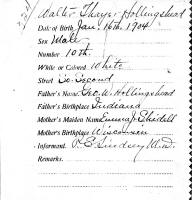 - Angelette Hollingshead: Born January 4, 1903, in California; Died January 4, 1903, in California (age Infant).