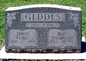 Ernest Geddes and Mary Kathleen (Porterfield) Geddes are buried in Brandon Cemetery, Belgrave, Huron Co., Ontario, Canada. Thanks to Find-A-Grave for making this image available.