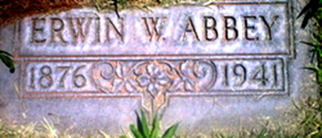 Erwin William Abbey was born May 11, 1876, in South Byron, Fond du Lac Co., WI, and died December 26, 1941, in Odessa, Ector Co., TX , at age 65. Buried in Ector County Cemetery, Odessa, Ector Co., TX. He is the son of William Searle Abbey of Hope Twp., Durham Co., Canada West, and Ida Elmira Blake of Orion Twp., Richland Co., WI.