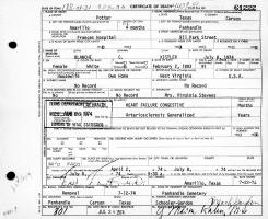 - Frederica Josephine "Freda" Kistler: Born September 1, 1901, in Fairview, Marion Co., WV; Died December 7, 1969, at Northwest Texas Hospital, Amarillo, Potter Co., TX (age 68). Buried in Sec. 5, Lot 26, Space 3, Panhandle Cemetery, Panhandle, Carson Co., TX. Married (1) before September 12, 1918, in Unknown to Phillip Isadore Sterne: Born September 17, 1898, in Milner, Milner Dist., Pike Co., GA; Died March 18, 1946, in Tulsa, Tulsa Co., OK (age 47). Divorced about 1928. Their daughter, Virginia Louise Sterne, was born September 23, 1924, in Breckenridge, Stephens Co., TX , and died June 17, 2002, in Amarillo, Randall Co., TX, Married (1) May 26, 1943, in Amarillo, Potter Co., TX, to Henry J. Evans (living in Snyder, TX): Born Unknown; Died Unknown. Henry was a roofer for a roofing company. Married (2) January, 1943, in Amarillo, TX, to Newby C. Tyson: Born Unknown; Died Unknown. Married (3) January, 1945, in Amarillo, TX, to Harry Floyd TaraBori: Born February 29, 1912, in Pennsylvania; Died November 16, 1971, in Bath, Steuben Co., NY. Divorced before 1946. Married (4) December 11, 1948, in Unknown, to Ensign Harold Scudder, son of Mr. and Mrs. Everett Scudder. Married (5) Unknown to Floyd L. Stevens: Born Unknown; Died Unknown.