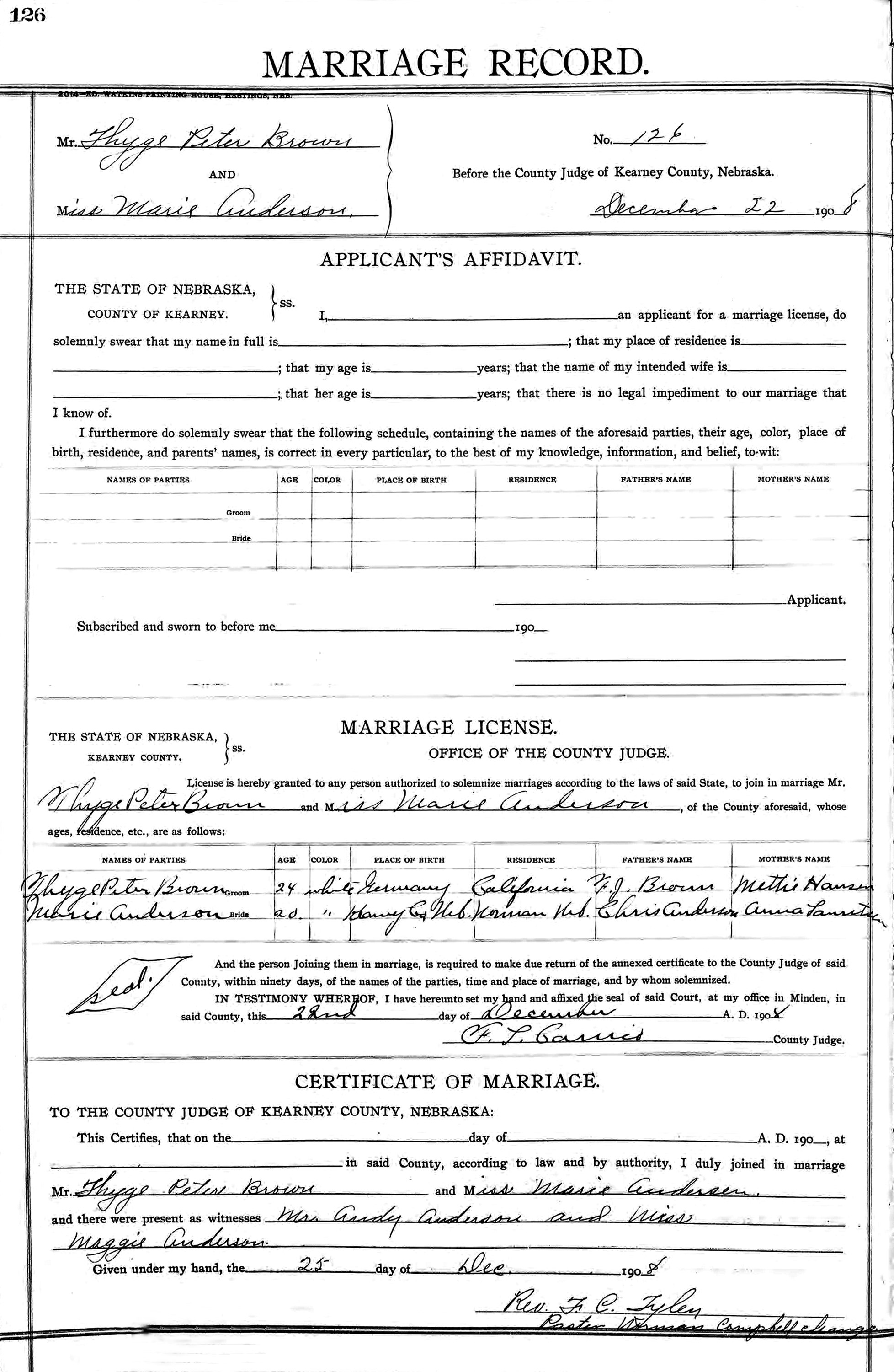Douglas Co., NE. Marie Eleanor "Mattie" Brown's mother, Marie Brown, died November 28, 1923, at