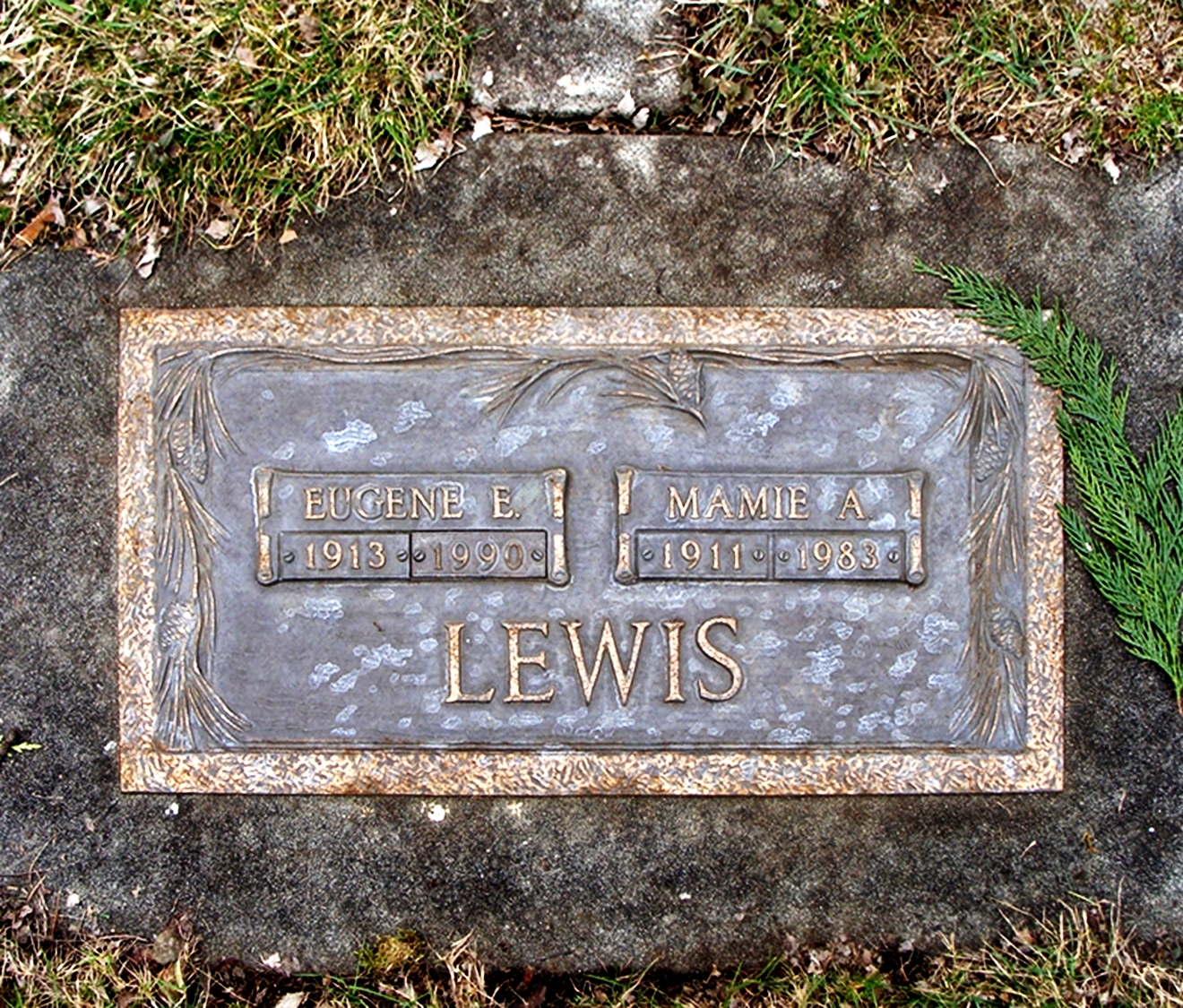 Eugene Elmer "Gene" Lewis and Mamie Annie (Gilbertson) (Steele) Lewis are buried in Mountain View Memorial Park, Lakewood, Pierce Co., WA.