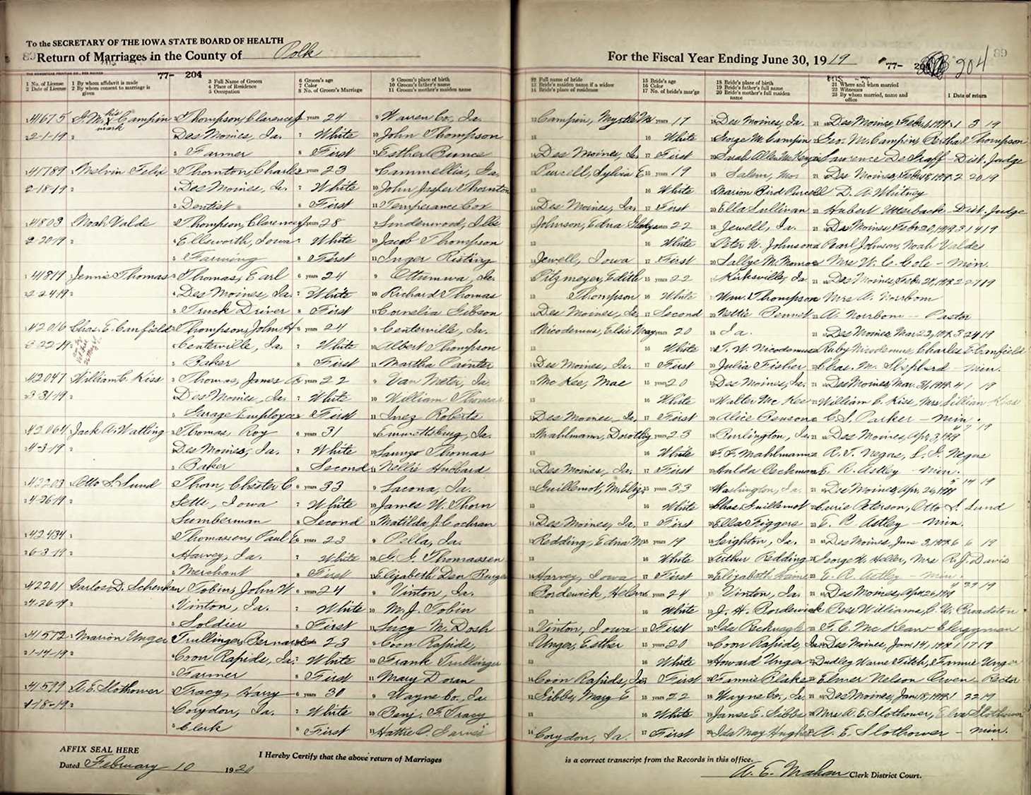 Bernardine W. "Barney" Trullinger and Esther E. Unger were married January 14, 1919, in Des Moines, Polk Co., IA.