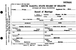 Verdus J. "Bert" Peterson and Fern Emily Rosebud Nelson were married on June 11, 1934, in Winner, Tripp Co., SD.