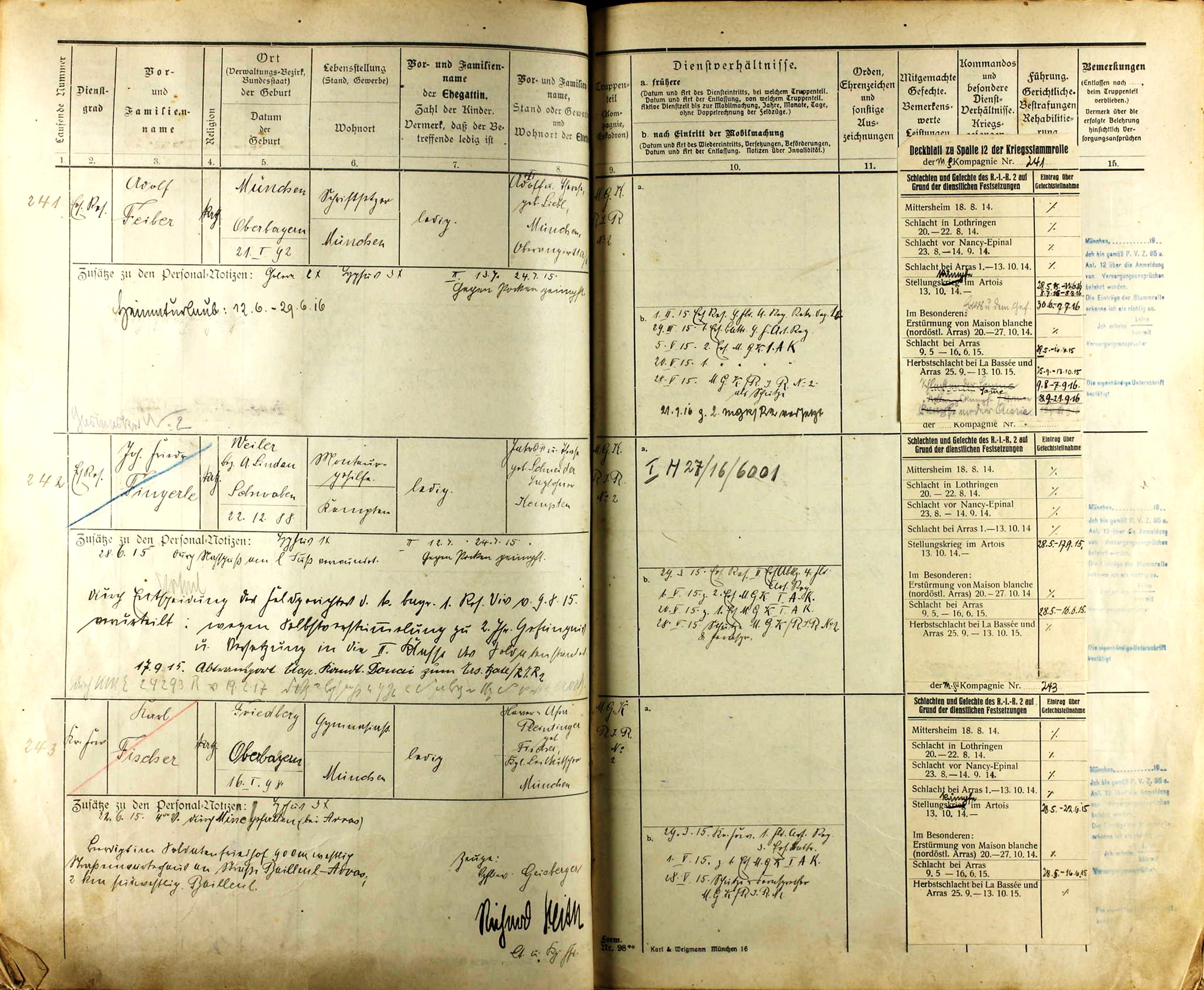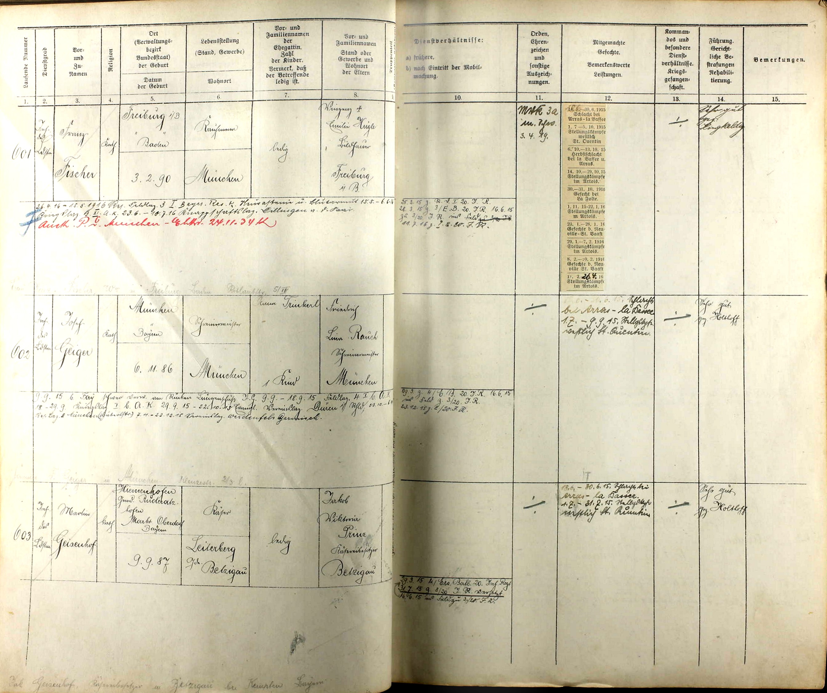 Bavaria, Germany, Personnel Roster, 1914 - 1918