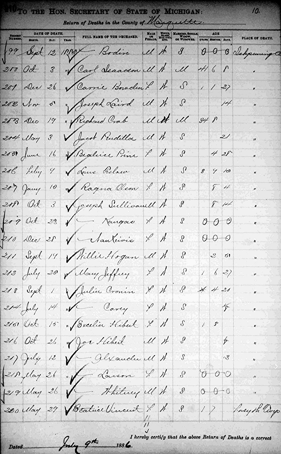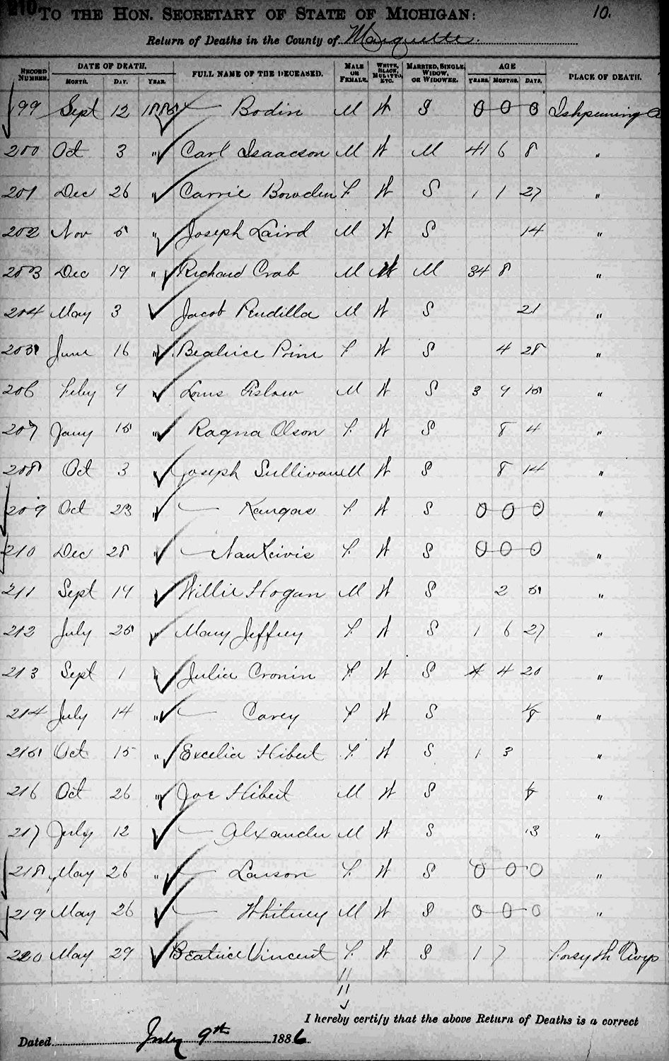 - Unnamed Daughter Larson: Born May 26, 1885, in Ishpeming, Marquette Co., MI; Died May 26, 1885, in Ishpeming, Marquette Co., MI (Stillborn Infant).