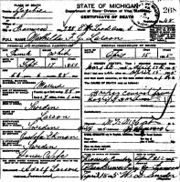 - Olga Marie Larson : Born June 11, 1882, in Ishpeming, Marquette Co., MI ; Died October 20, 1965, in Rockford, Winnebago Co., IL (age 83). Buried in Arlington Memorial Park Cemetery, Rockford, Winnebago Co., IL. Married June 6, 1906, in Ironwood, Gogebic Co., MI, to Karl Ludwig "Carl" Swenson: Born October 25, 1879, in Rockford, Winnebago Co., IL; Died January 5, 1956, in Rockford, Winnebago Co., IL (age 76). Buried in Arlington Memorial Park Cemetery, Rockford, Winnebago Co., IL.