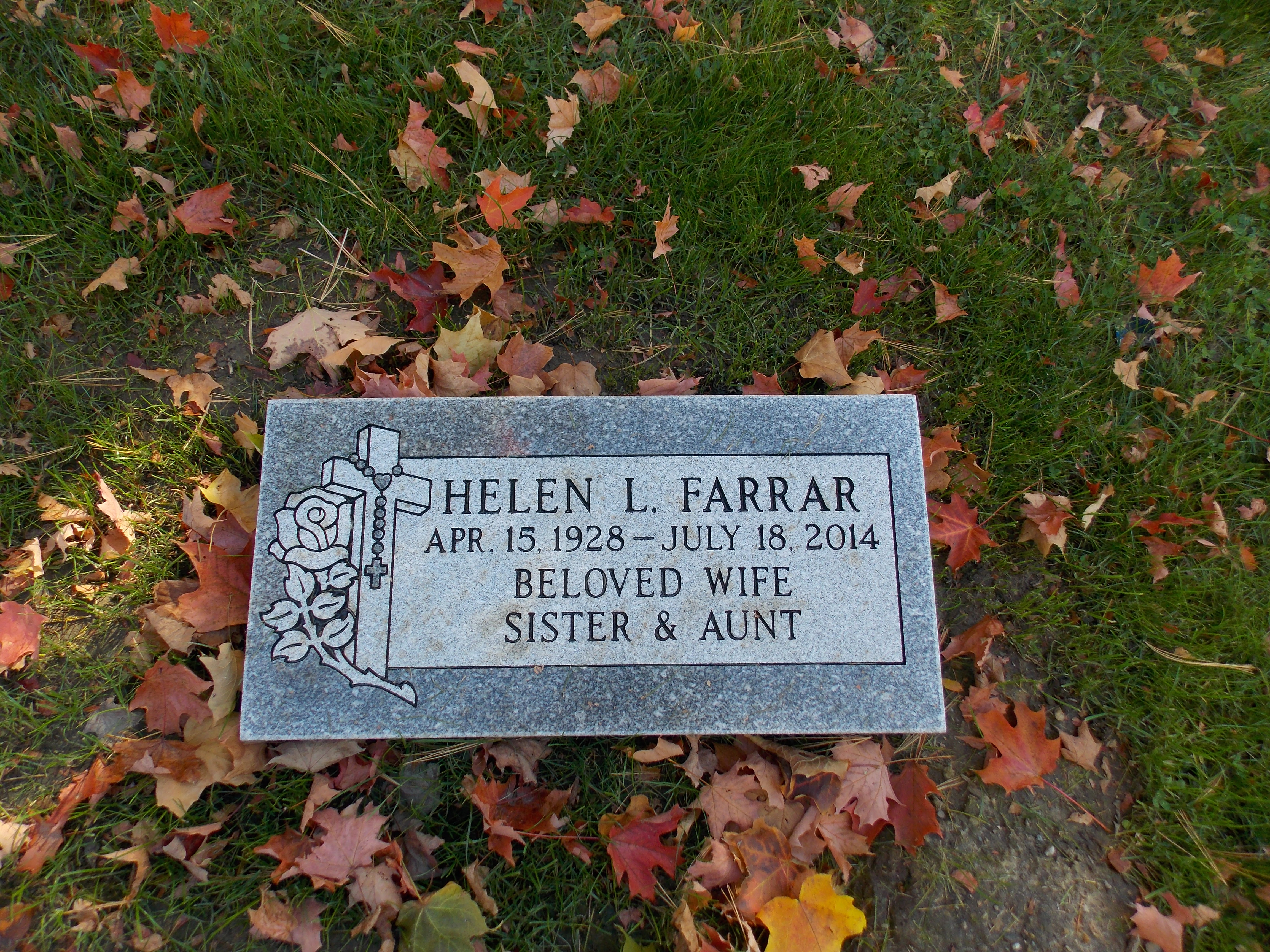 - Helen Louise Bickett: Born April 15, 1928, in Detroit, Wayne Co., MI; Died July 18, 2014, in Allen Park, Wayne Co., MI (age 86). Buried in Holy Sepulchre Cemetery, Southfield, Oakland Co., MI. Married November 4, 1950, in Detroit, Wayne Co., MI, to Seaton Samuel "Red" Farrar Jr.: Born December 16, 1924, in Afton, VA; Died October 31, 1990, in Michigan (age 65). Buried in Holy Sepulchre Cemetery, Southfield, Oakland Co., MI.