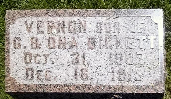 - George Vernon Bickett: Born October 31, 1906, in Edinburg, Christian Co., IL ; Died from Tuberculosis December 16, 1922, in Minock, Woodford Co., IL (age 16). Buried in Evergreen Memorial Cemetery, Bloomington, McLean Co., IL. Never married.