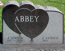 - James Gordon Abbey: Born September 7, 1917, in Fond du Lac, Fond du Lac Co., WI; Died August 6, 2000, at Serenity House in Tomah , Monroe Co., WI (age 82). Buried in Farmers Valley Cemetery, Farmers Valley, Monroe Co., WI. Married January 23, 1965, in Hennepin Co., MN, to Elsie Patricia "Pat" (Hanson) Lathrop: Born October 21, 1925, in Sparta, Monroe Co., WI; Died March 26, 2016, in Fitchburg, Dane Co., WI (age 90). Buried in Farmers Valley Cemetery, Farmers Valley, Monroe Co., WI. Patricia was first married August 8, 1946, at the parsonage of St. Patrick's Catholic Church, Sparta, Monroe Co., WI, to John Francis "Jiggs" Lathrop : Born April 20, 1926, in Milwaukee, Milwaukee Co., WI; Died October 6, 1994, in Cowley, Big Horn Co., WY (age 68). Buried in Unknown. Divorced about May 5, 1952, in Sparta, Monroe Co., WI.