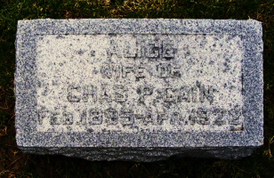 Alice Elizabeth (Baillie) Cain is buried in Riverside Cemetery, Moline, Rock Island Co., IL. Thanks to Find-A-Grave for making this image available.