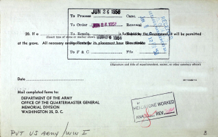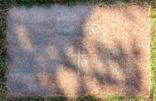 Gladys Emilia "Glady" (Freeberg) Cain and her granddaughter, Amy Cain, are buried in Holyrood Catholic Cemetery, Shoreline, King Co., WA. Thanks to Find-A-Grave for making this image available.