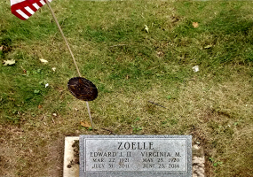 Edward James Zoelle Jr. and Virginia M. (Graby) Zoelle are buried in Forest Home Cemetery, Marinette, Marinette Co., WI. Many thanks to Find-A-Grave for making this image available.