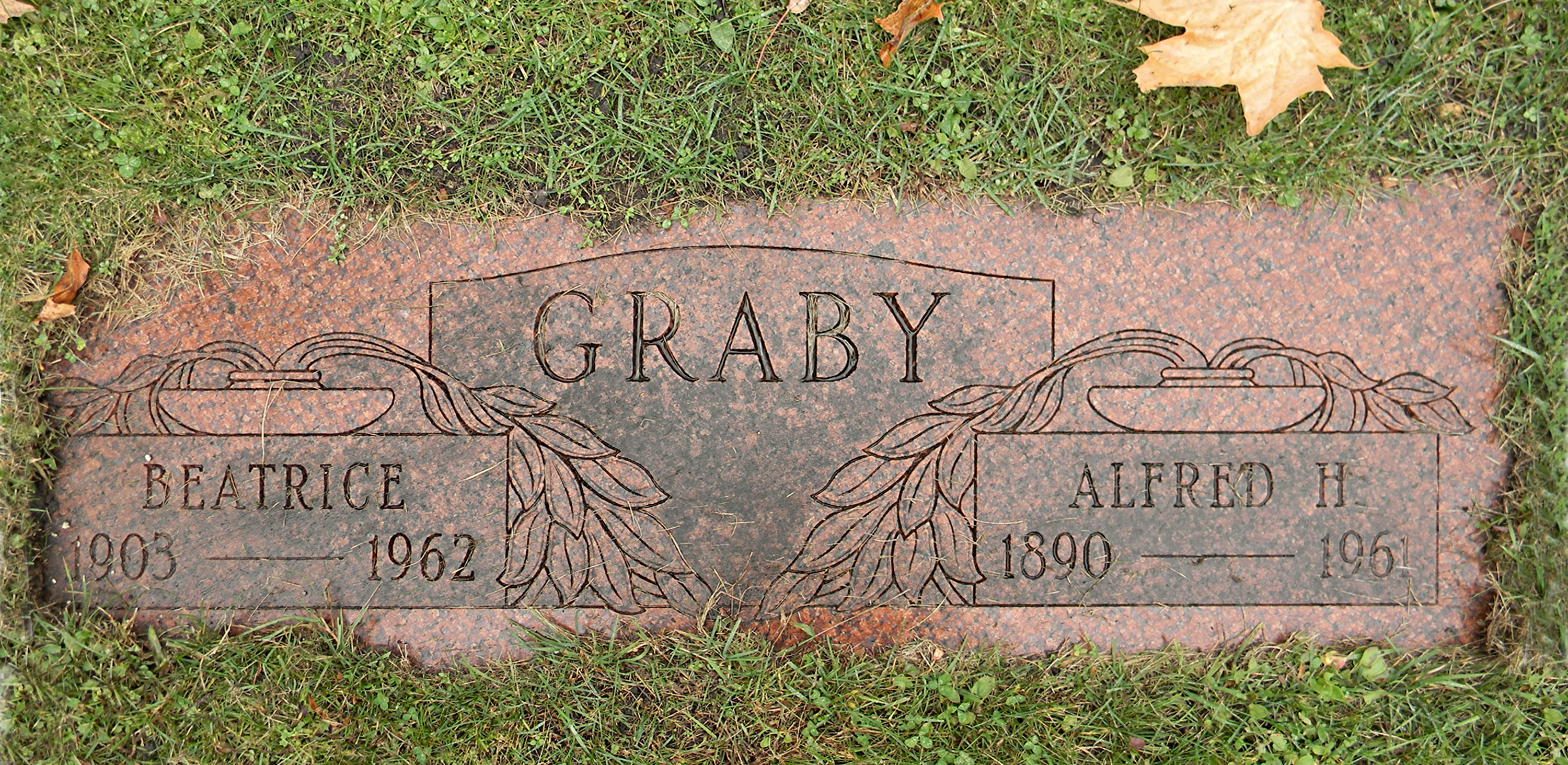 Alfred Herman Graby and Beatrice (Faucett) Graby are buried in Forest Home Cemetery, Marinette, Marinette Co., WI. Many thanks to Find-A-Grave for making this image available.